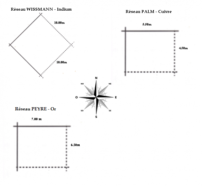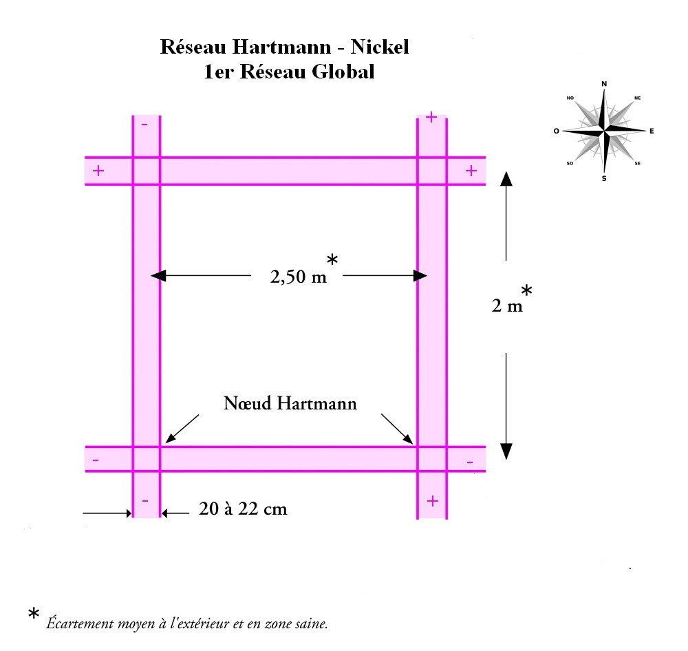 – Réseaux : Hartmann (cf image) qui agit sur le physique, Curry (cf image) qui agit sur le psychologique, Wissmann, Palm, Peyré ( pour les secondaires cf image). Tous ces réseaux forment une grille énergétique tellurique et cosmique.