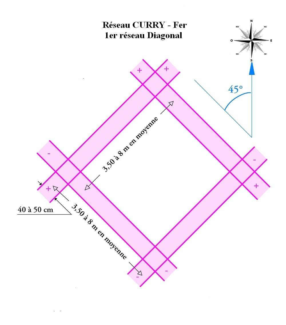 – Réseaux : Hartmann (cf image) qui agit sur le physique, Curry (cf image) qui agit sur le psychologique, Wissmann, Palm, Peyré ( pour les secondaires cf image). Tous ces réseaux forment une grille énergétique tellurique et cosmique.